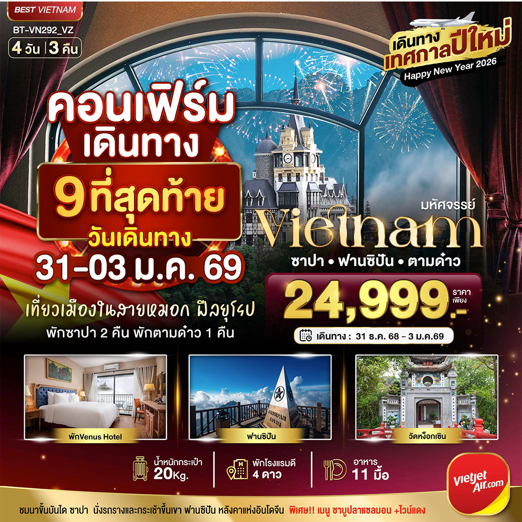 ซุปตาร์...ซาปา สัมผัสเมืองแห่งสายหมอกเวียดนามเหนือ 4 วัน 3 คืน (OCT 2025 - MAR 2026) บินบ่าย-กลับเย็