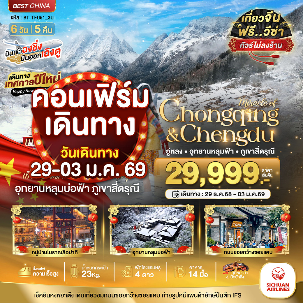 ซุปตาร์...ชอบเอินซือ รักอู่หลง มงลงที่ฉงชิ่ง 5 วัน 4 คืน (OCT-DEC 2025) บินเย็น-กลับดึก