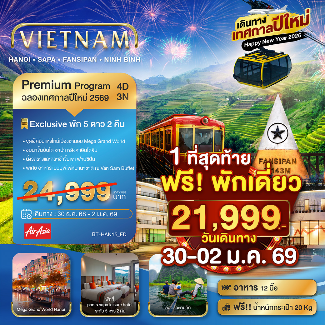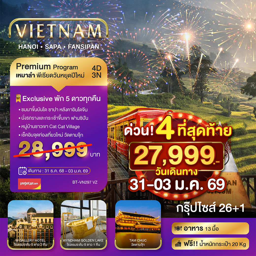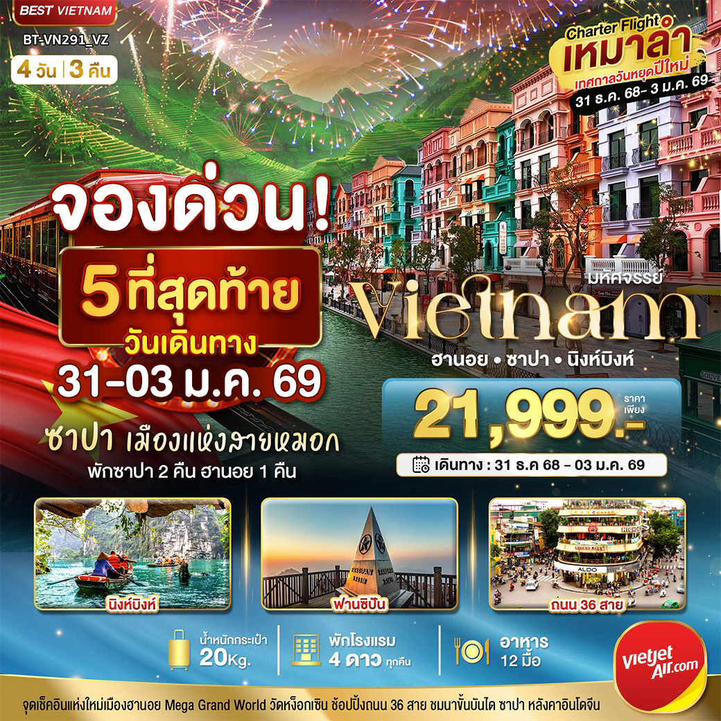 ซุปตาร์...ซาปา สัมผัสเมืองแห่งสายหมอกเวียดนามเหนือ 4 วัน 3 คืน (OCT 2025 - MAR 2026) บินบ่าย-กลับเย็