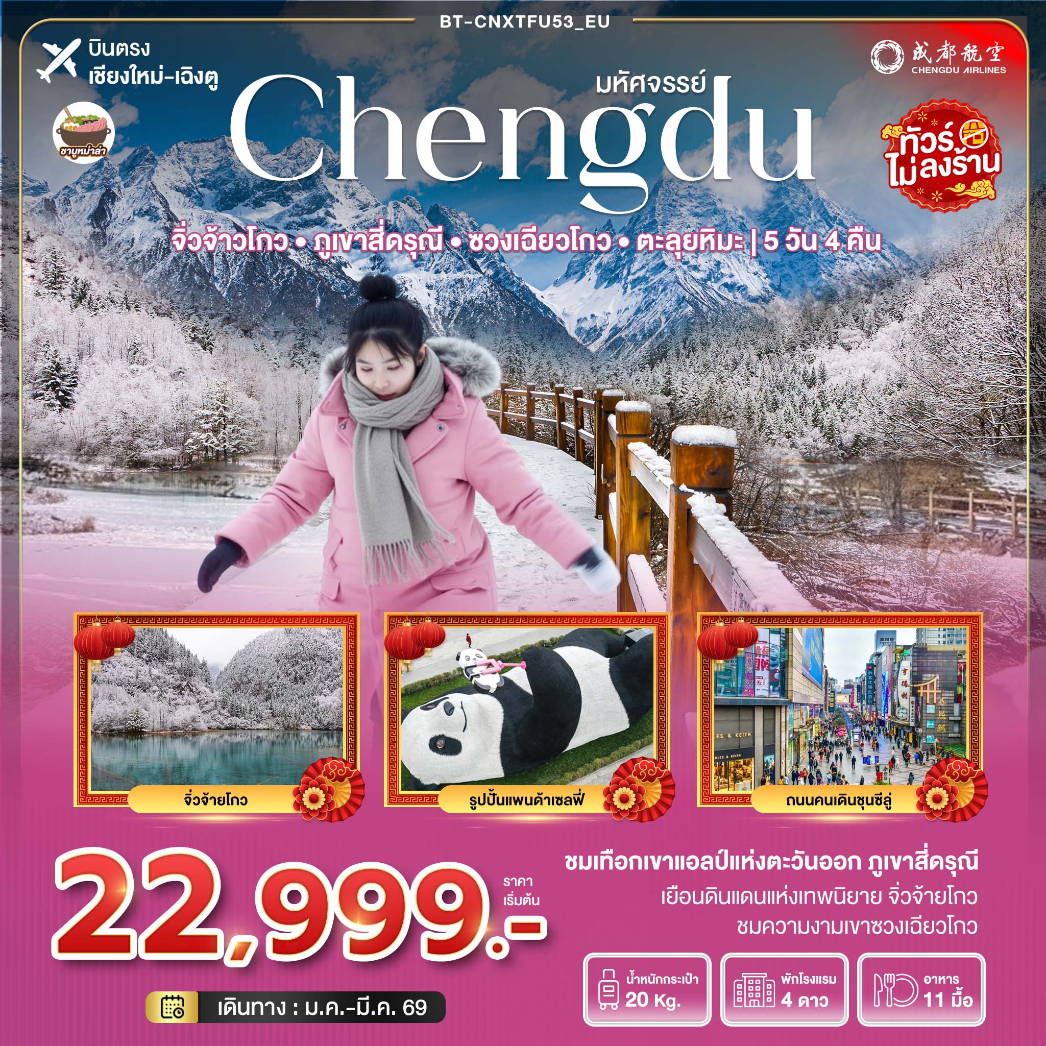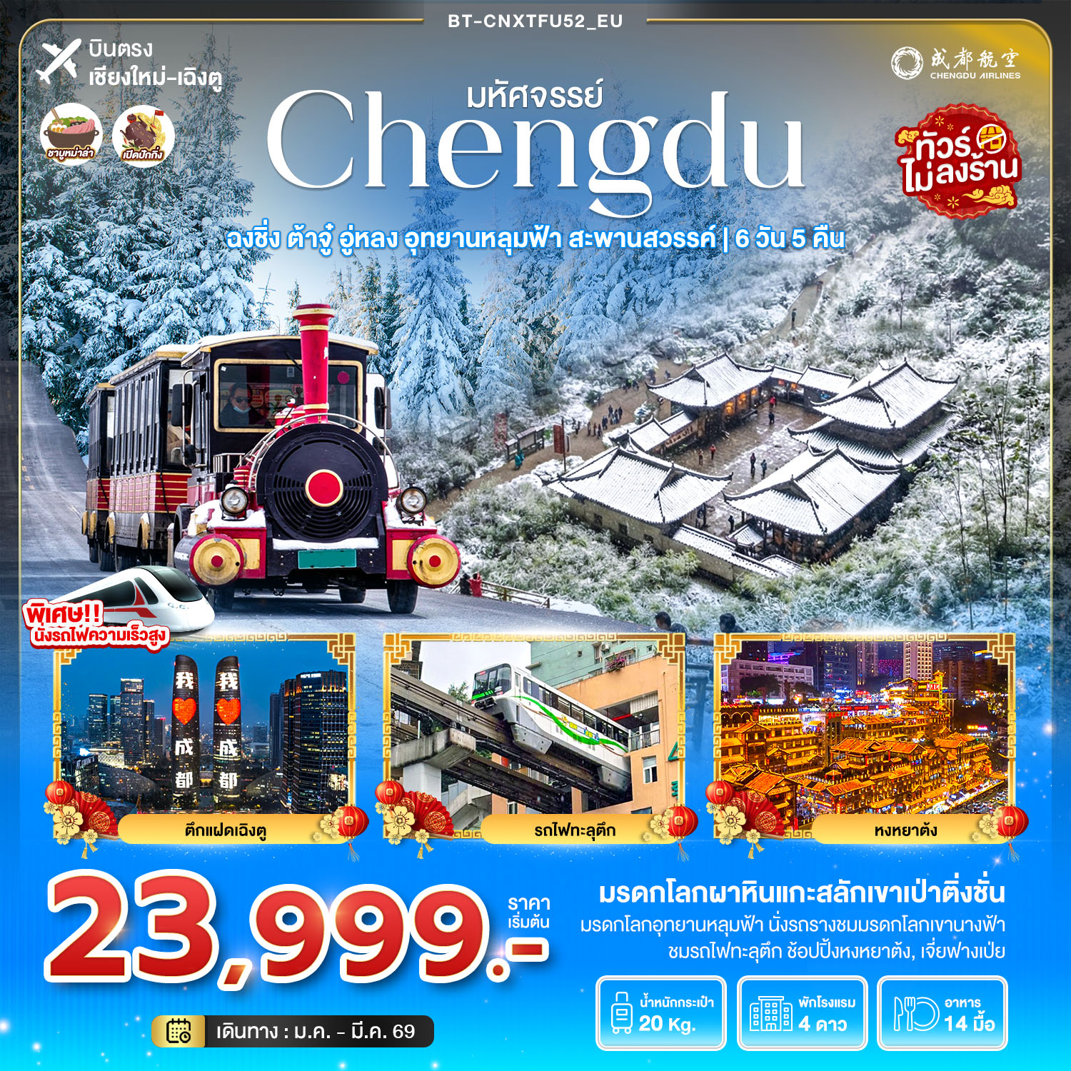 มหัศจรรย์...เฉิงตู ภูเขาสี่ดรุณี ปี้เผิงโกว จิ่วจ้ายโกว (ไม่ลงร้าน-นั่งรถไฟความเร็วสูง)