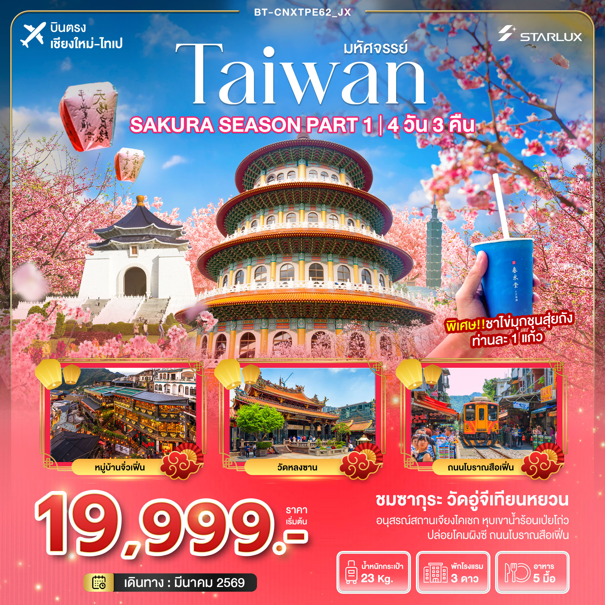 ซุปตาร์...ไทเป สุริยันจันทรา สวยขยี้ใจ EP.2 4 วัน 3 คืน (OCT 25 - MAR 26) บินเช้า-กลับค่ำ