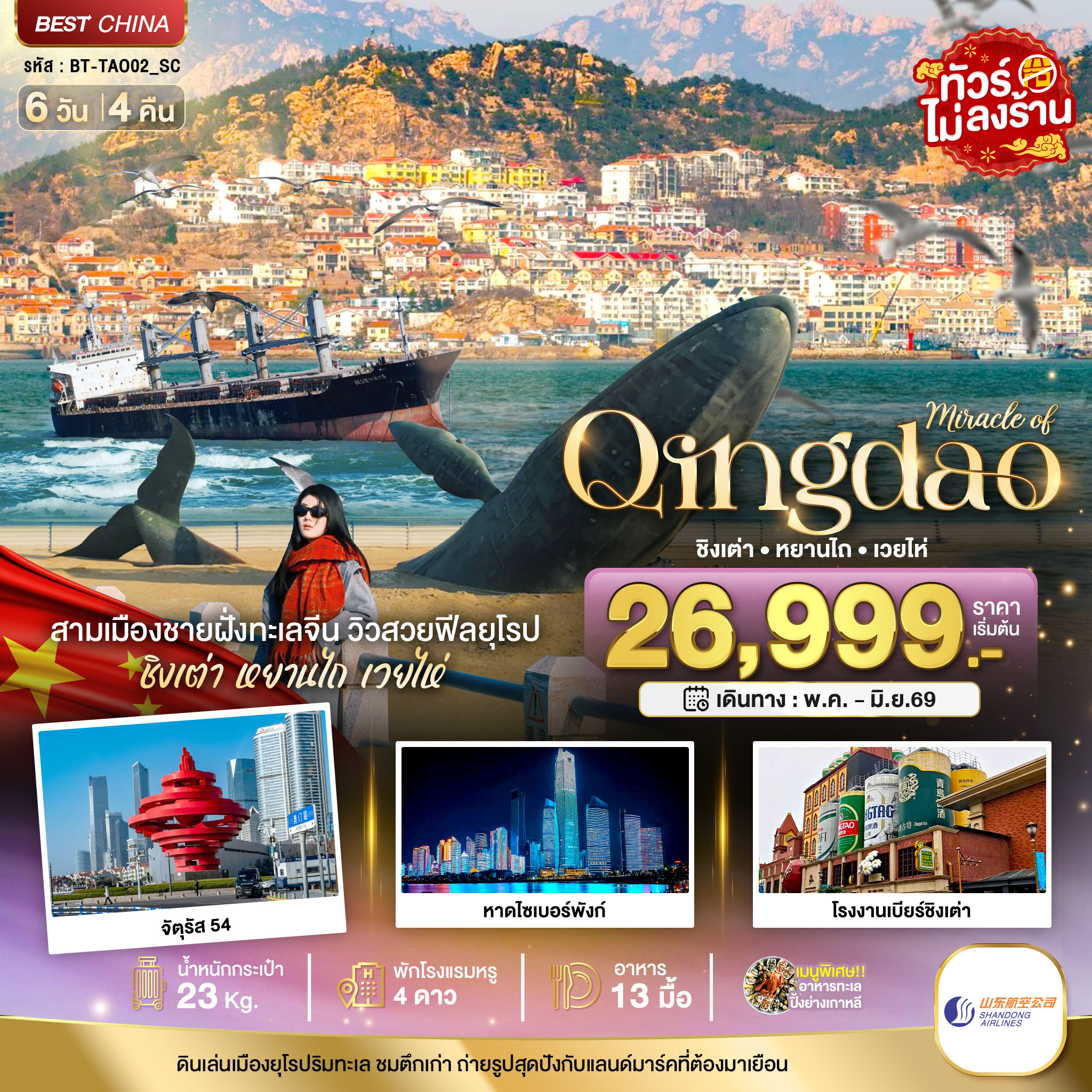 มหัศจรรย์...ชิงเต่า ภูเขาเหล่าซาน (บินตรง)