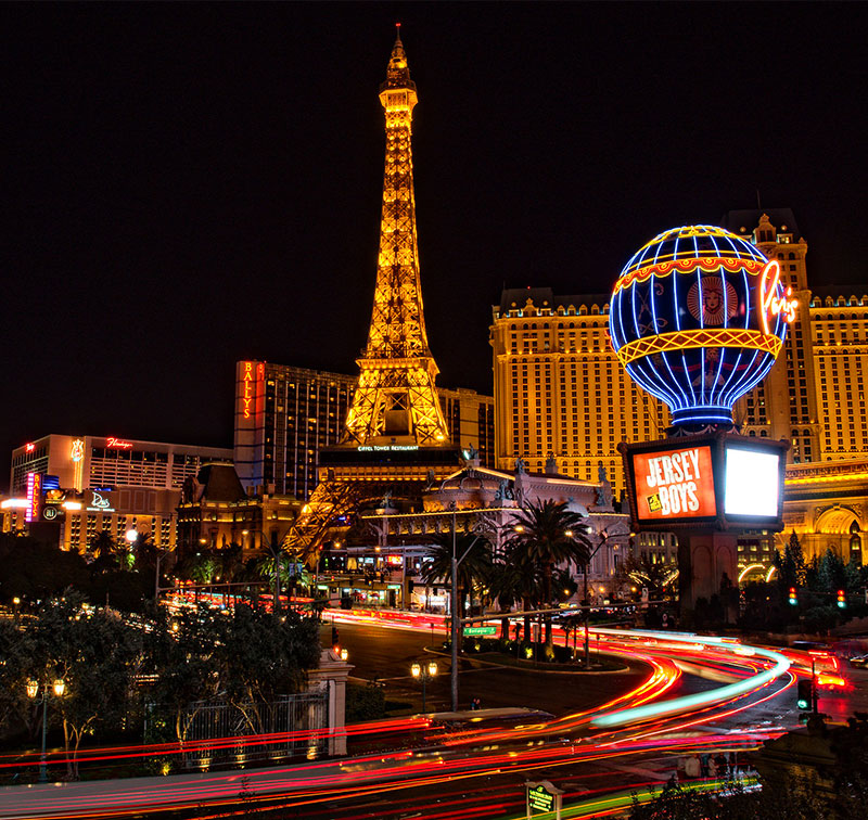 จากนั้นนำท่านเดินทางต่อ จนเข้าสู่เมืองลาสเวกัส (Las Vegas) ซึ่งตั้งอยู่ในมลรัฐเนวาดา มีฉายาว่า "เมืองคนบาป" (Sin City) โดยเป็นเมืองที่เจริญเติบโตขึ้นมาจากกิจการการพนันเป็นแม่เหล็กแรงดึงดูดหลักให้นักท่องเที่ยวหลั่งไหลเข้ามา เมืองที่มีโรงแรมสุดหรูหราอลังการทั้งภายในและภายนอกอาคาร